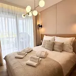 Completo di un balcone, un bar sulla terrazza e un salottino, quest'alloggio sul lungomare è arredato con un divano e con comfort contemporanei come l'un televisore con canali satellitari e una TV a schermo piatto con canali satellitari. Oltre a servizi come un asse e un ferro da stiro e un impianto di climatizzazione, gli ospiti hanno a disposizione rilevatori di fumo e una chiave elettronica per sentirsi al sicuro. Quest'appartamento comprende 2 camere da letto. Dispone di 1 bagno che è fornito di una cabina doccia e una vasca idromassaggio. Inoltre, potrete usufruire di asciugacapelli, accappatoi e teli da bagno forniti nel bagno.
